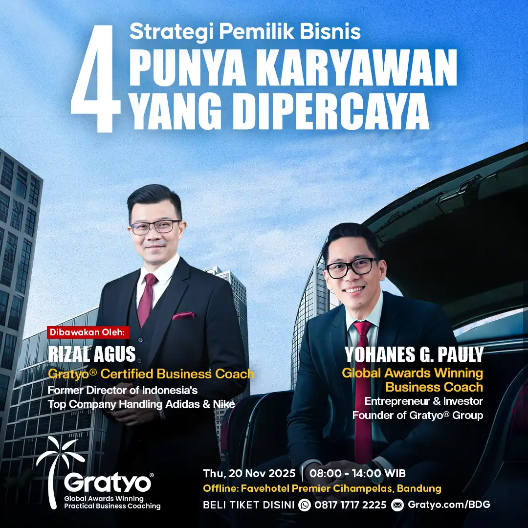 Jika Anda ingin coaching dan konsultasi secara private dan mendalam tentang bisnis Anda, Anda bisa ikut kelas lanjutannya dengan menghubungi Gratyo® Team.