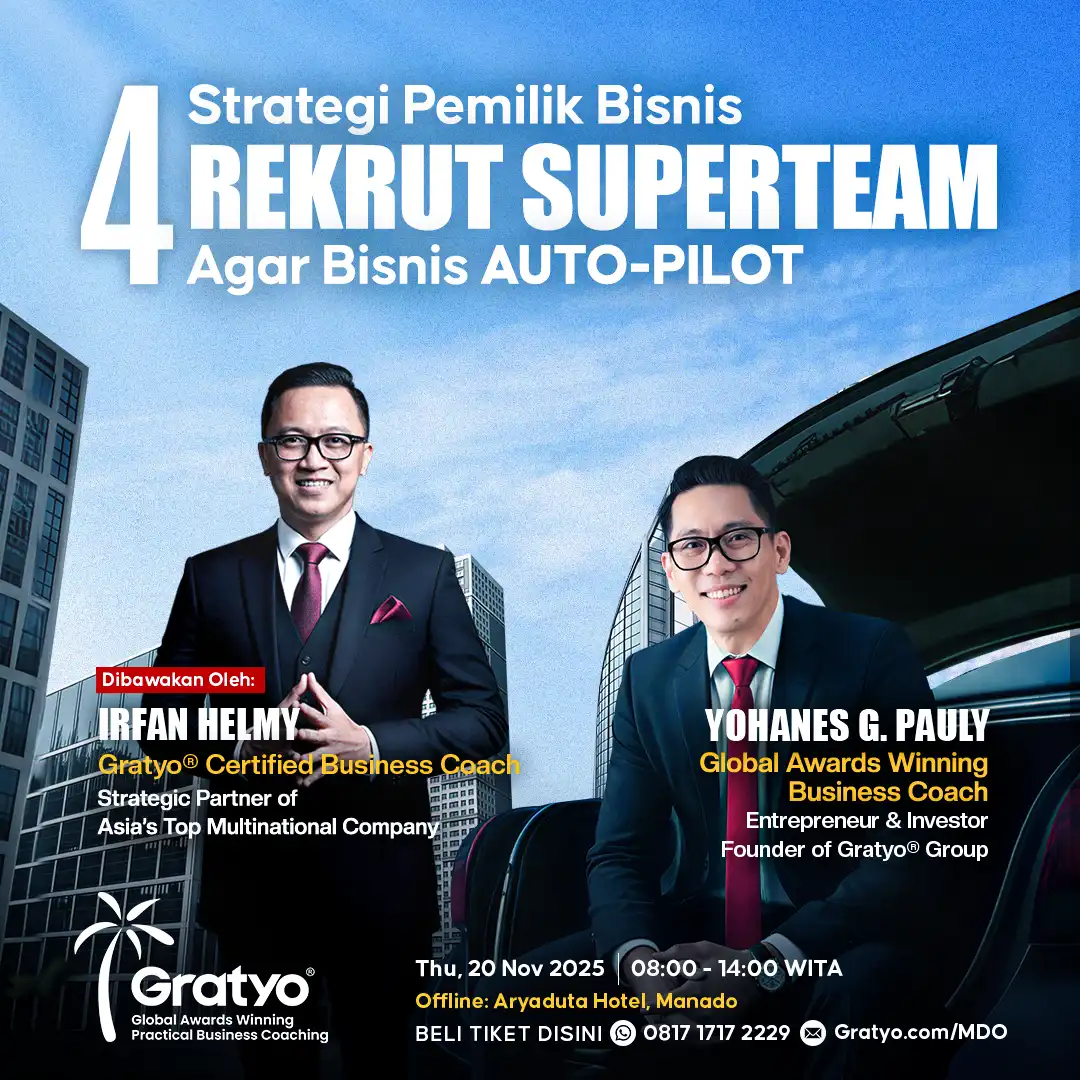 Gratyo® Live Business Coaching akan diselenggarakan secara offline di Aryaduta Hotel, Manado.
