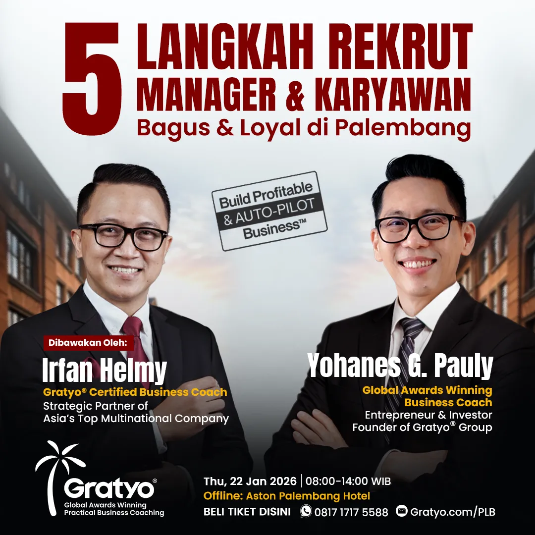 Jika Anda ingin coaching dan konsultasi secara private dan mendalam tentang bisnis Anda, Anda bisa ikut kelas lanjutannya dengan menghubungi Gratyo® Team.